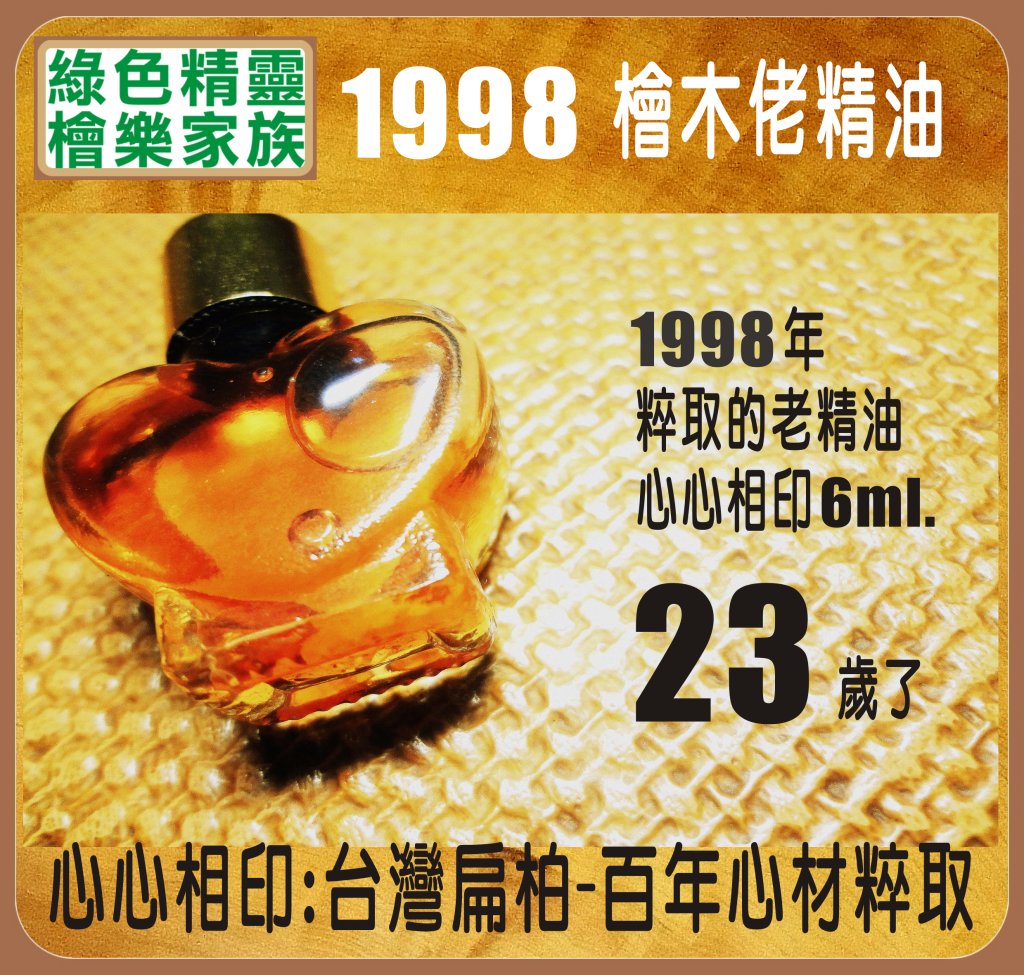 。萃取年份:1998年萃取存放至今的純化老精油。